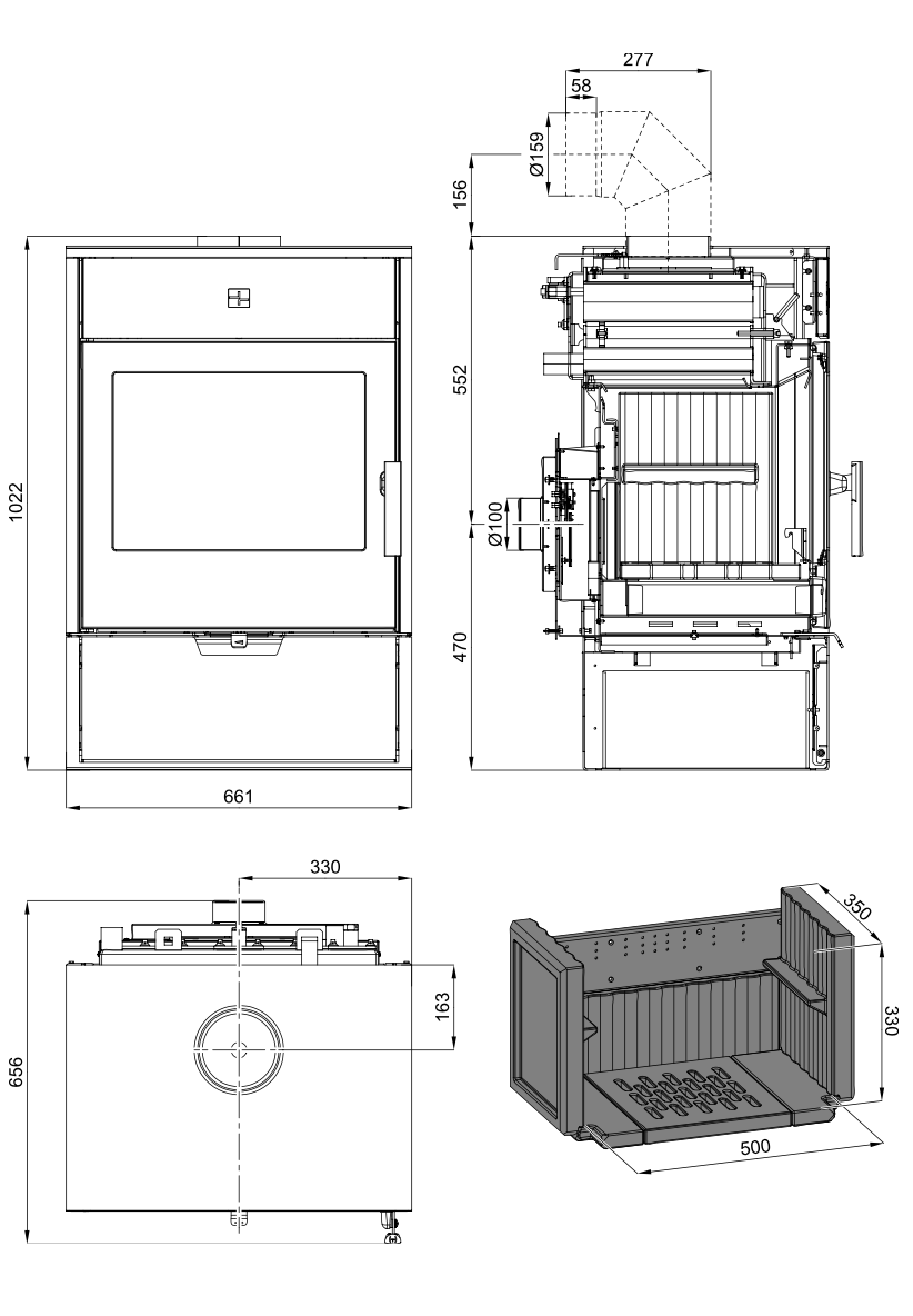 | Palivo: | dřevo, ekobrikety, uhelné brikety |
