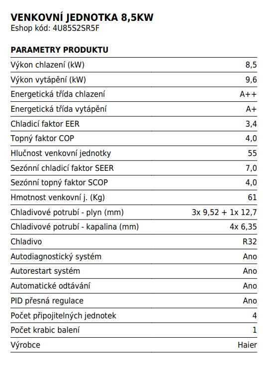 | Výkon chlazení (kW): | 8.5 |