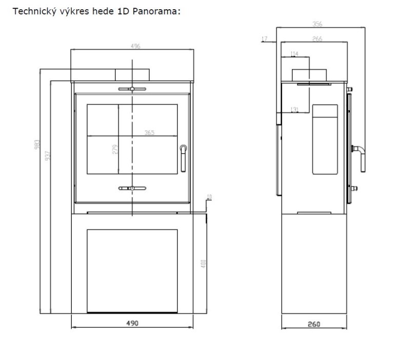 Tato krbová kamna jsou hluboká pouhých 266 mm a nezabírají mnoho prostoru. Mají dvířka téměř přes celou šířku s velkým sklem, což poskytuje nádherný pohled do spalovací komory.