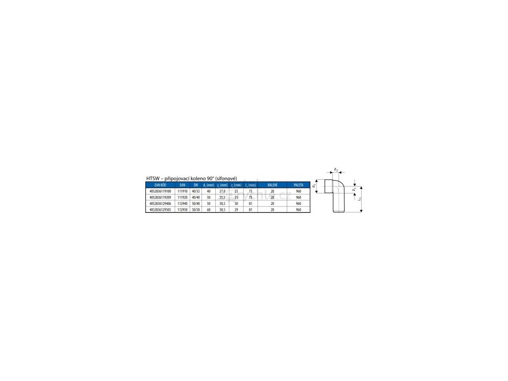 HT PLUS HTSW připojovací koleno DN40/40, 90°, sifonové, PP, šedá