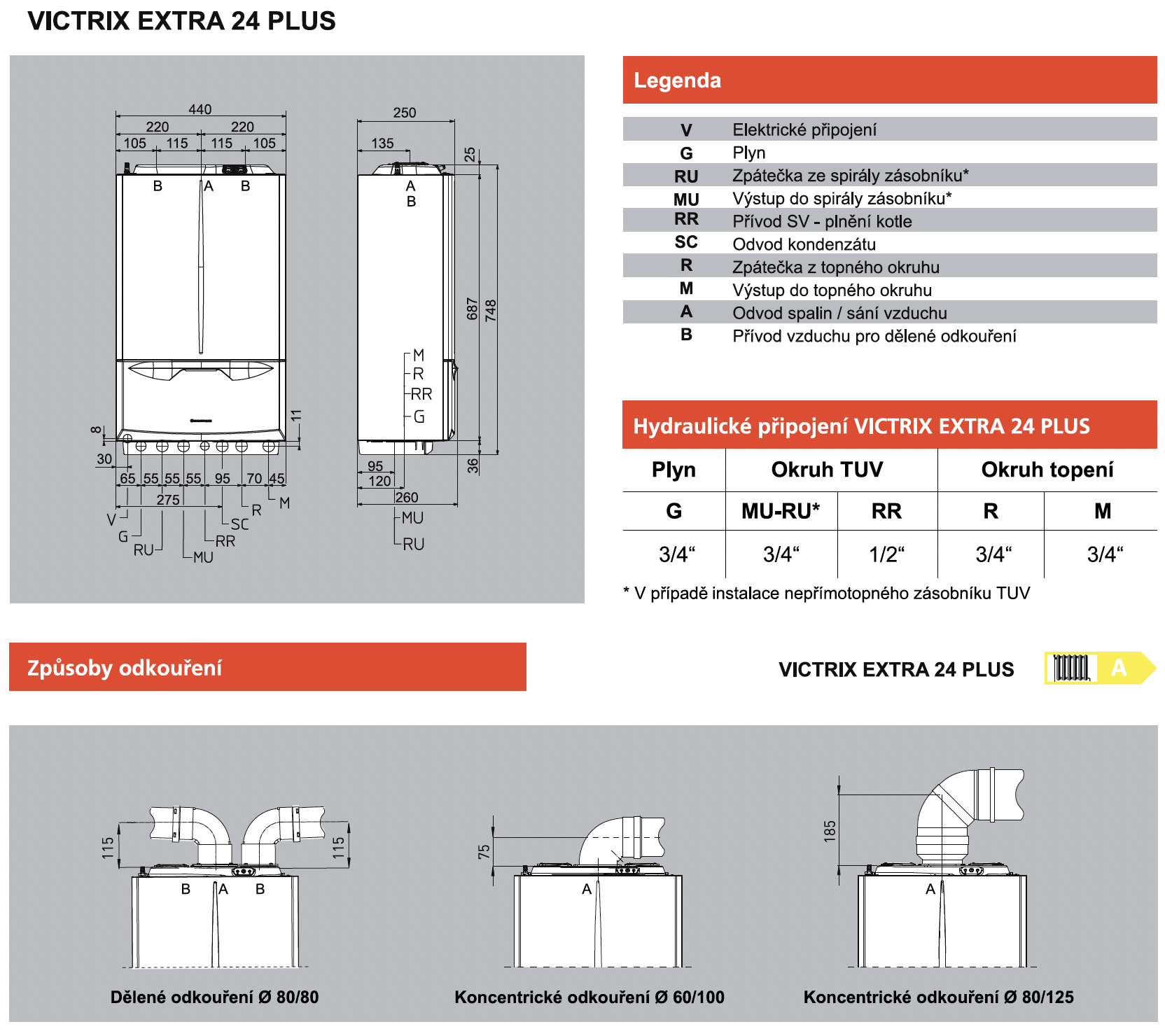 Immergas VICTRIX EXTRA 24 PLUS je nástěnný kondenzační kotel se systémem adaptivního řízení spalování o tepelných výkonech 2,7 - 24,0 kW v režimu vytápění a 2,7 - 28,0 kW při ohřevu TUV, pokud je instalován nepřímotopný zásobník TUV.