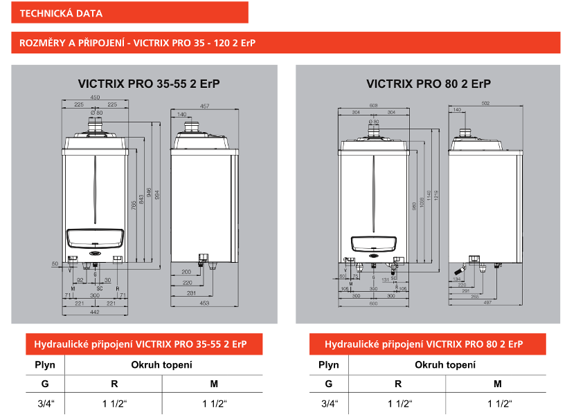 Popis kotlu: Immergas VICTRIX PRO 35 2 ErP je nástěnný kondenzační plynový kotel s nuceným odvodem spalin. Kotel disponuje výkonem od 3,4 do 34,0 kW a je určen k vytápění. V závislosti na zvoleném typu odkouření lze kotel provozovat jako plynový spotřebič v provedení "B" či "C". VICTRIX PRO 35 2 ErP je možné nainstalovat buď samostatně nebo do kaskády (max. sestava 8 kotlů). Při zapojení kotlů do kaskády je nutné použít vhodnou nadřazenou regulaci nebo regulátor THETA, který je vybaven řízením až 8 kotlů v kaskádě, 2 směšovanými okruhy, 1 přímým okruhem a 1 okruhem TUV. Dále má regulátor k dispozici volitelné vstupy a výstupy (2+2), které lze využít k regulaci širšího regulačního celku.