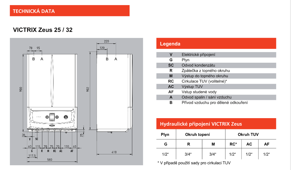 - Jmenovitý tepelný výkon TUV: 32 kW
