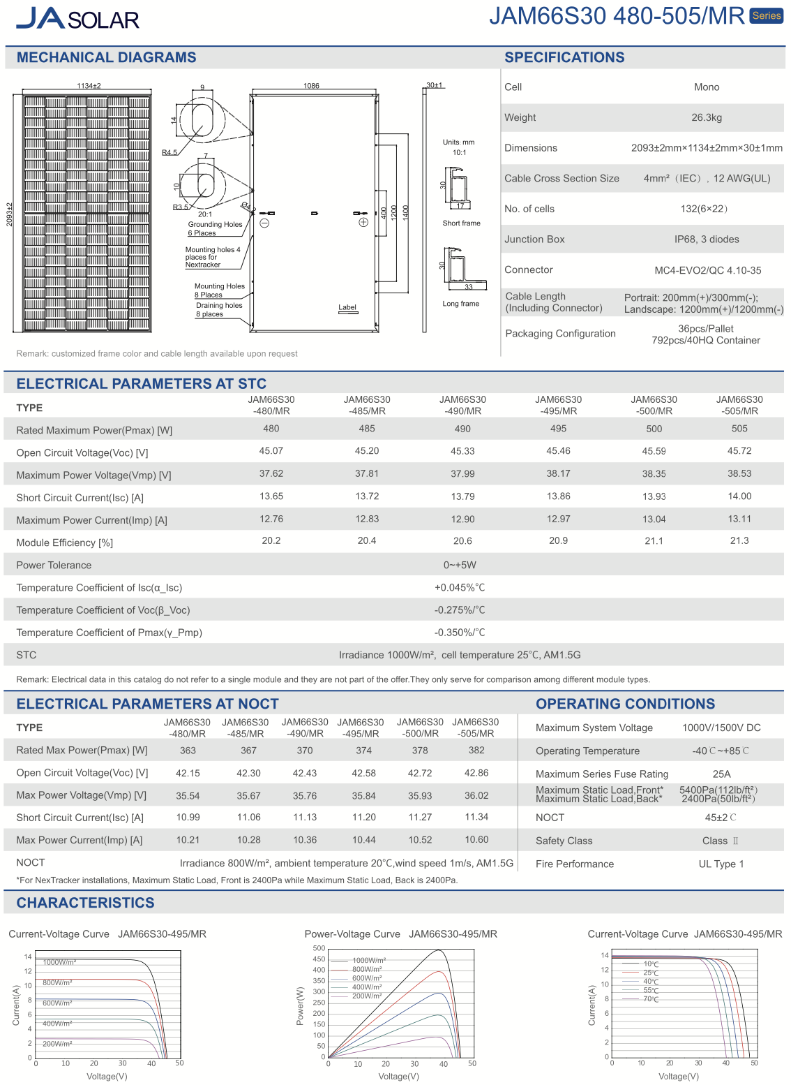 JA SOLAR JAM66S30 505 MR BF fotovoltaický panel 505 W, monokrystalický, černý rám