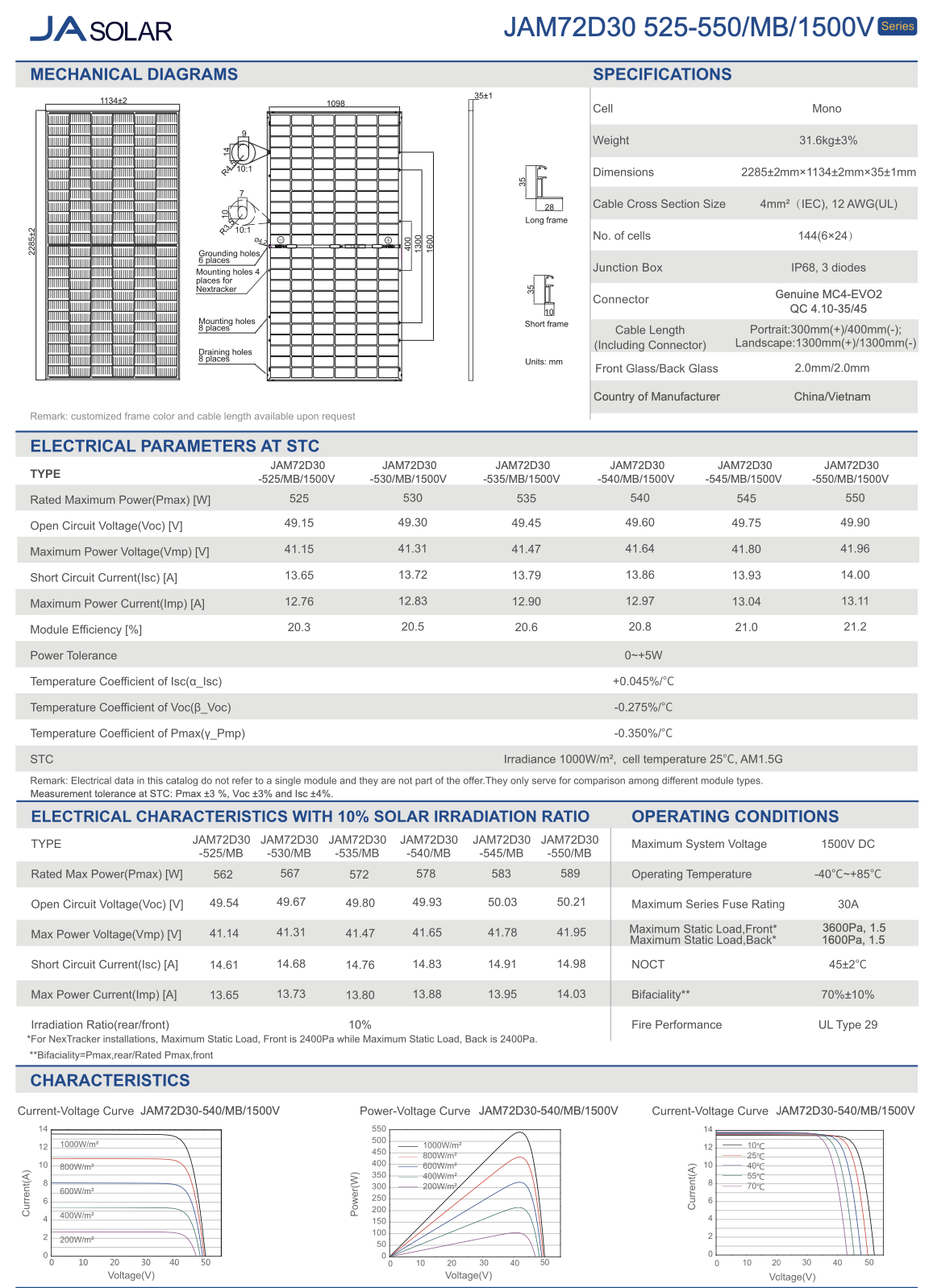 JA SOLAR JAM72D30 550, fotovoltaický panel 550 Wp, monokrystalický, stříbrný rám