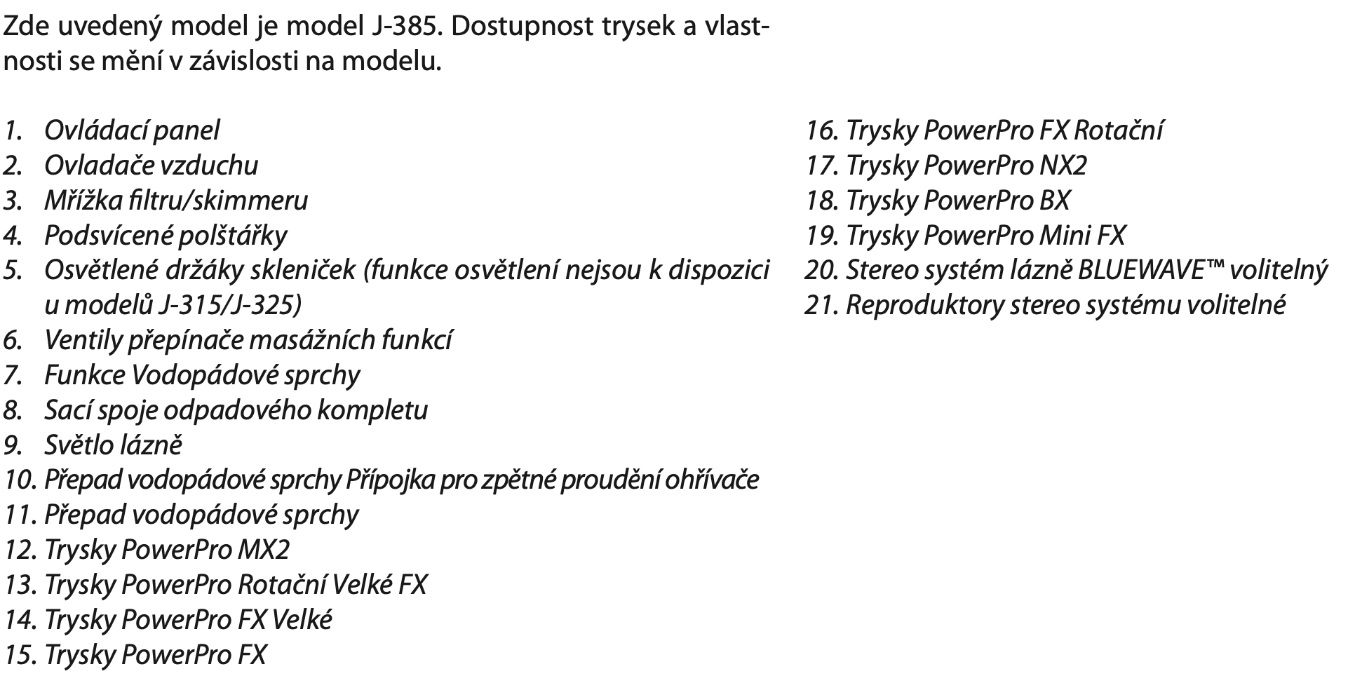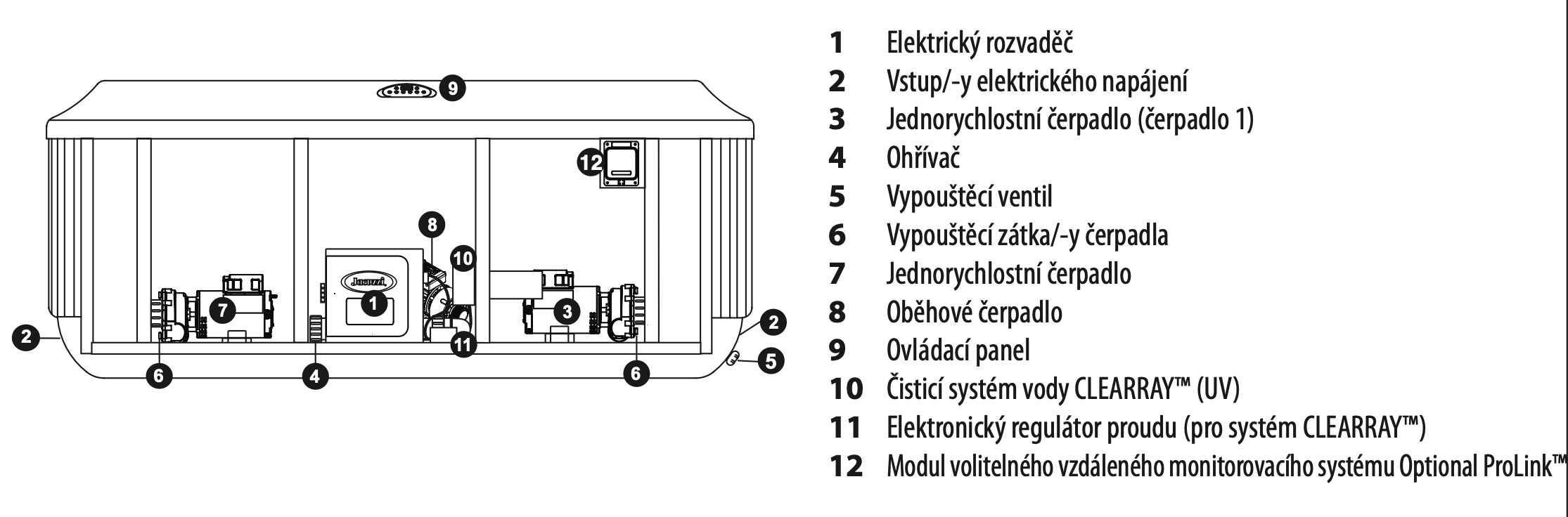 - Funkce ClearRay® UV (UV-nízkotlaká lampa použitá ve filtračním procesu eliminuje bakteriální kultury ve vodě. Hygienická správa se automaticky zapne, když jsou spuštěny intervaly údržby naprogramované ve výrobním závodě.)