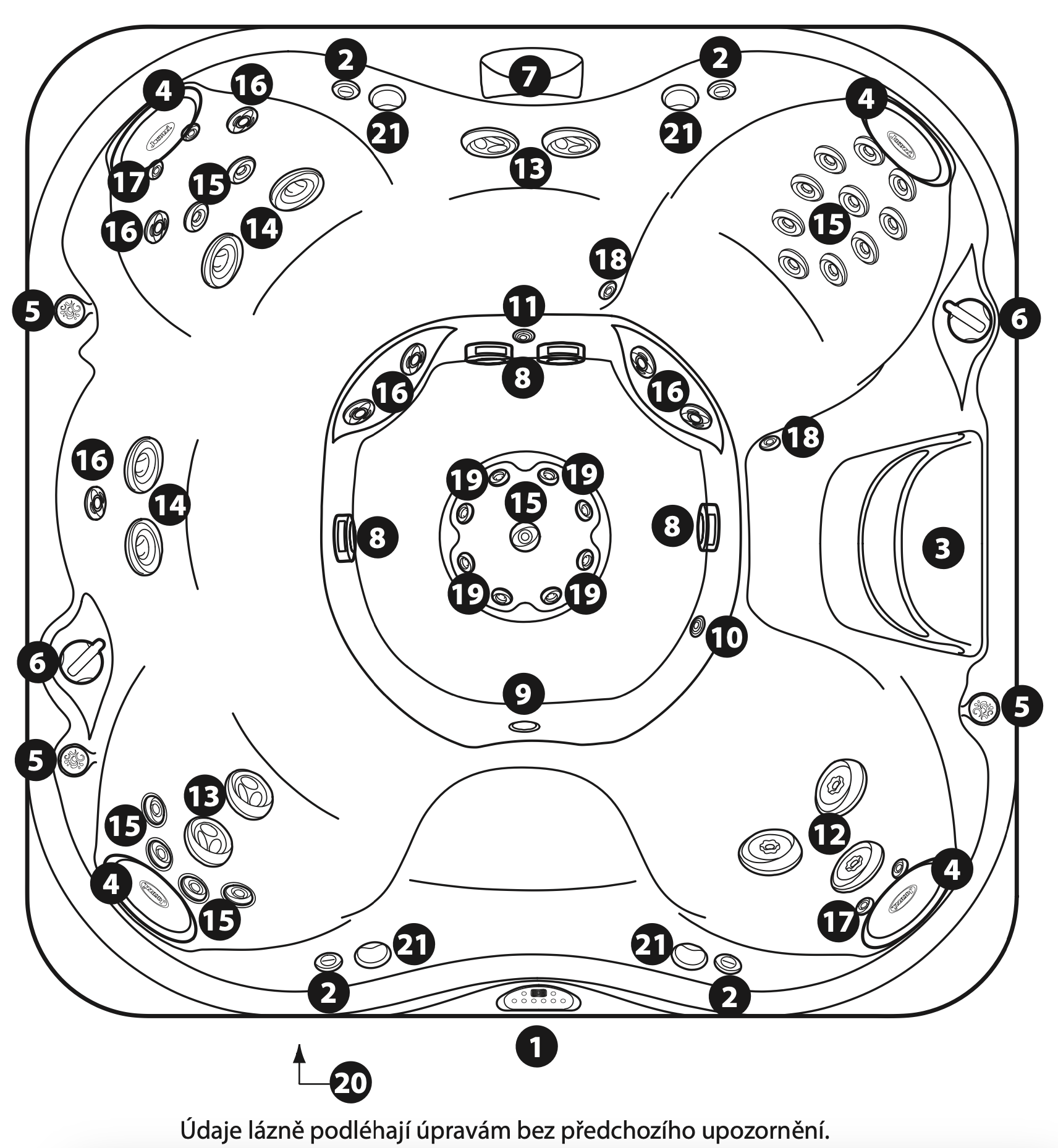 JACUZZI J-335 klasická vířivka 5-6 osob, 2140x2140x940mm