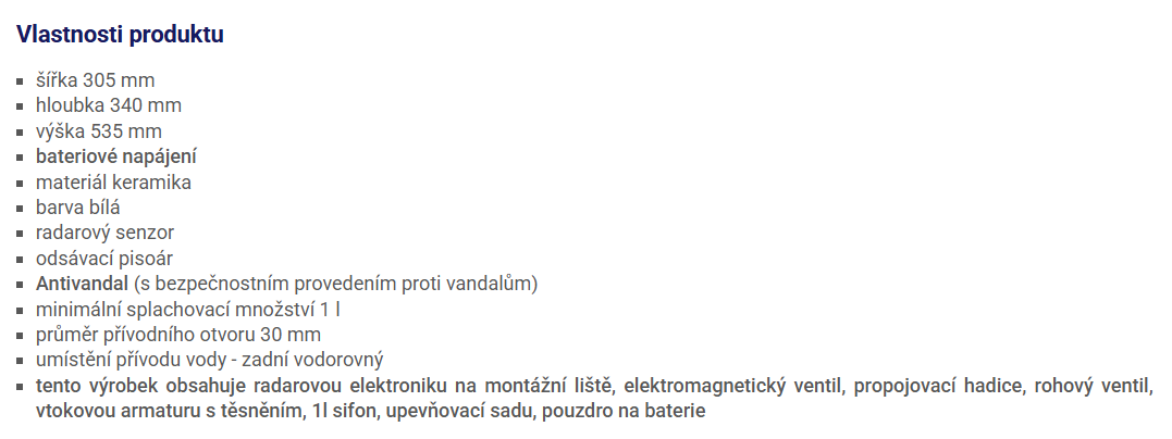| Napájení pisoáru: | bateriové |