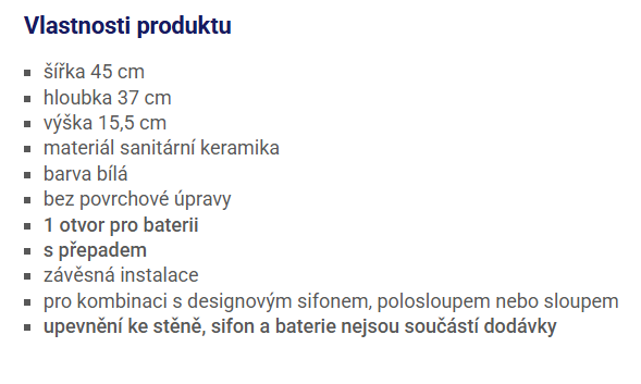 | Instalace: | nástěnná (závěsná) |