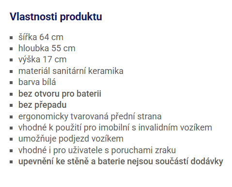 | Instalace: | nástěnná, závěsná |