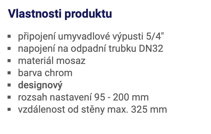 | Napojení na odpad: | DN 32 |