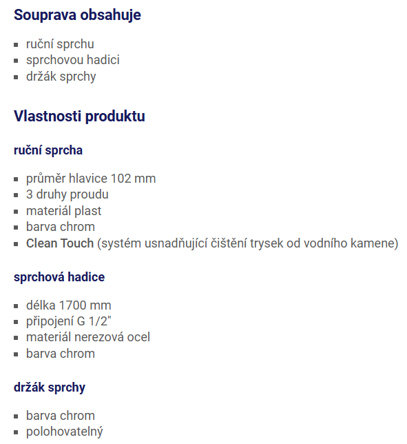 JIKA RIO sprchová souprava 3-dílná, ruční sprcha