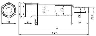 Jímka pro 4 čidla, 15 x 17 x 120 mm, 1/2", mosaz