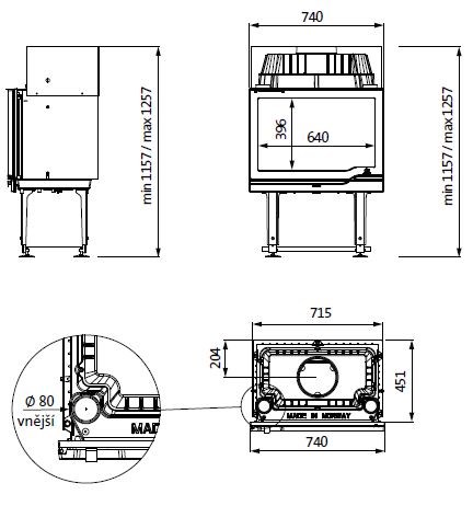 - velké prosklení dvířek umožňuje krásný výhled na oheň