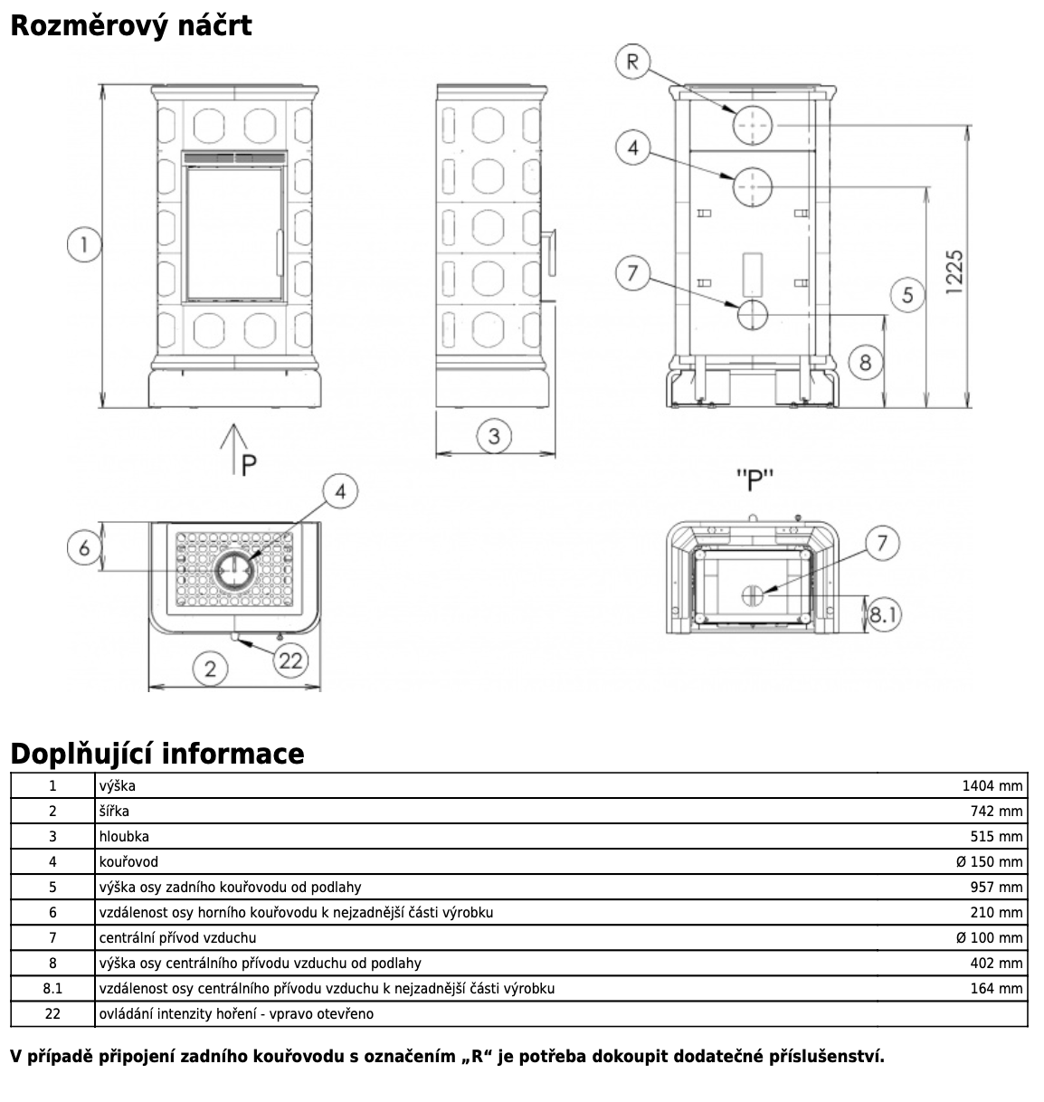 | Palivo: | kusové dřevo, dřevěné brikety |