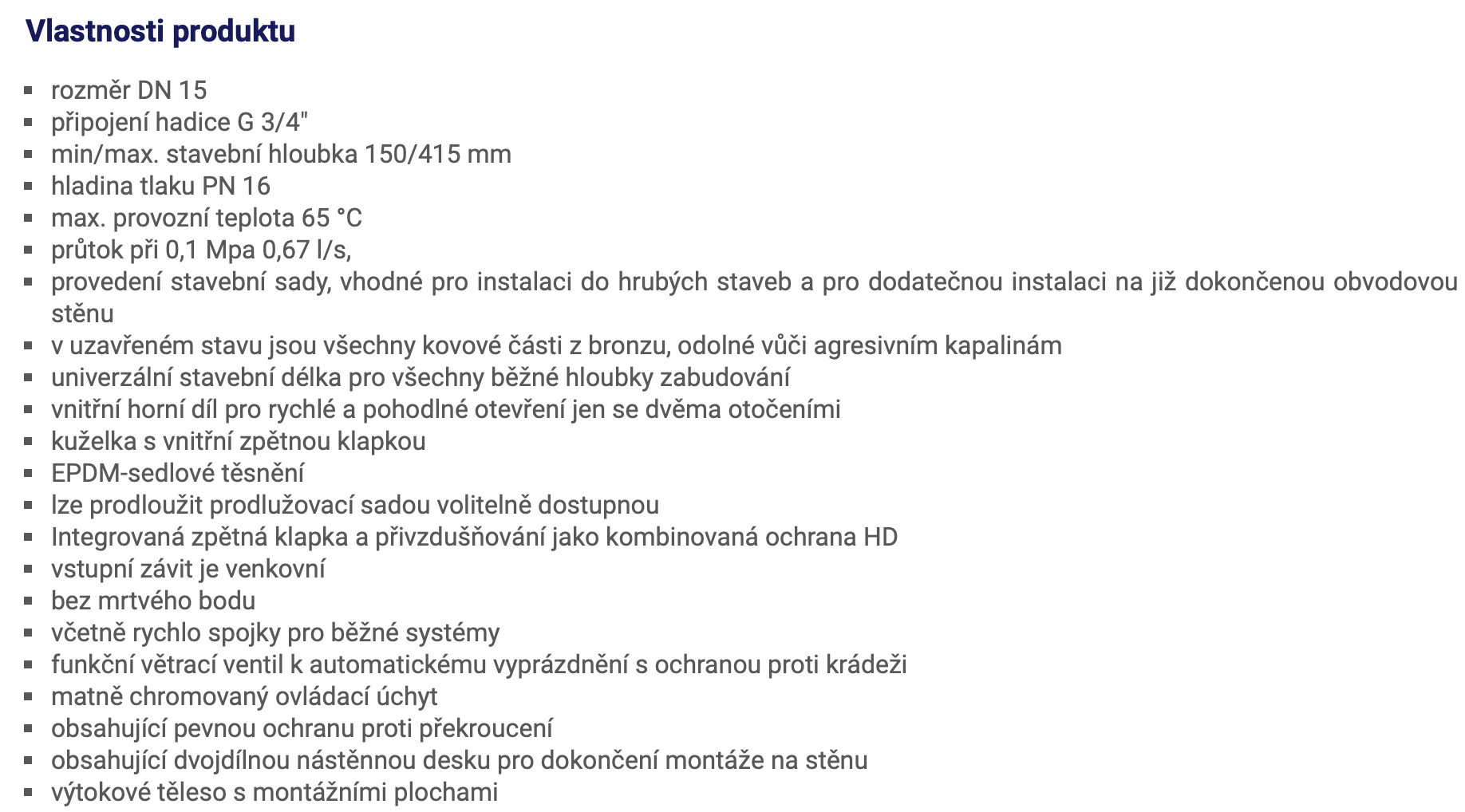 KEMPER FROSTI nezámrzná venkovní armatura DN15, 415mm, s rukojetí, kompletní set