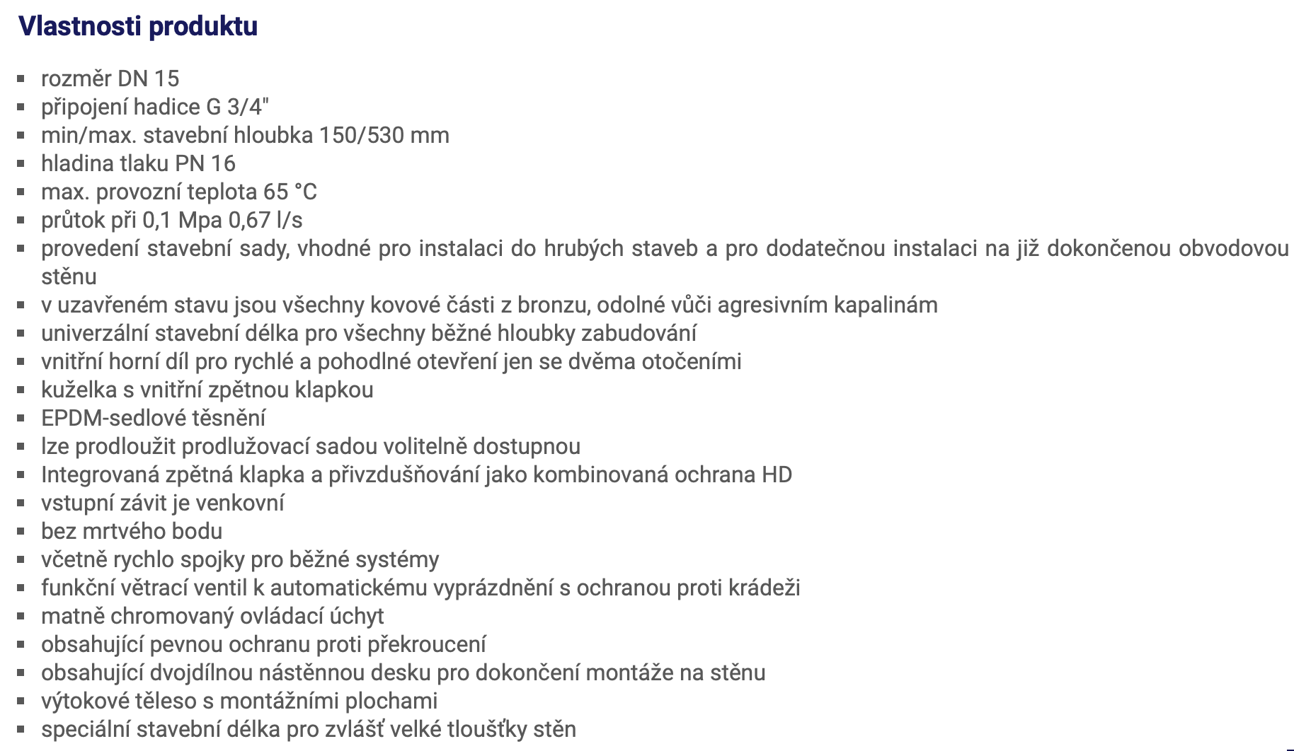 | Typ ventilu: | nezámrzný ventil |