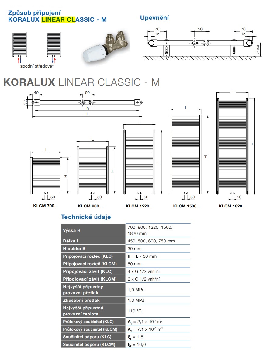 Trubková otopná tělesa KORALUX LINEAR CLASSIC – M jsou vyrobena z uzavřených ocelových profilů s průřezem ve tvaru “D” a rovných profilů s kruhovým průřezem. Těleso je upravené pro spodní středové připojení s připojovací roztečí 50 mm. Otopná tělesa jsou dodávaná se sadou pro upevnění na stěnu včetně odvzdušňovací a zaslepovací zátky. Barevné provedení radiátoru dle vzorníku barev.