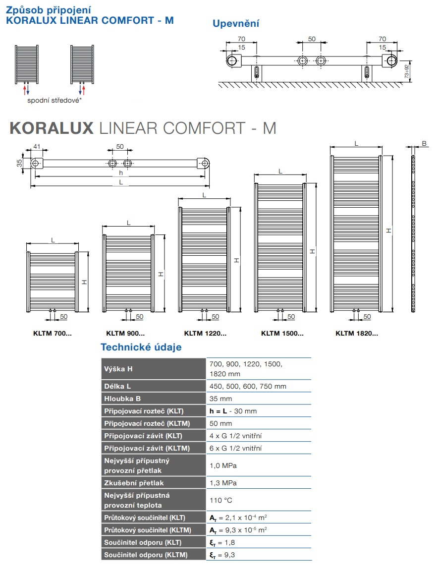 Trubková otopná tělesa KORALUX LINEAR COMFORT – M jsou vyrobena z uzavřených ocelových profilů s průřezem ve tvaru “D” a rovných profilů s kruhovým průřezem. Těleso je upravené pro spodní středové připojení s připojovací roztečí 50 mm. Otopná tělesa jsou dodávaná se sadou pro upevnění na stěnu včetně odvzdušňovací a zaslepovací zátky. Barevné provedení radiátoru dle vzorníku barev.