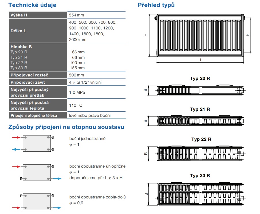 Model RADIK KLASIK - R je deskové otopné těleso v provedení KLASIK upravené pro rychlou náhradu článkových litinových nebo ocelových radiátorů s připojovací roztečí 500 mm. Výška 554 mm zaručuje jeho bezproblémovou montáž na místo starého radiátoru. Umožňuje levé nebo pravé boční připojení na rozvod otopné soustavy a konstrukcí je určeno pro otopné soustavy s nuceným oběhem. Ze zadní strany jsou přivařeny dvě horní a dolní příchytky, otopná tělesa o délce 1800 mm a delší mají navařena šest příchytek.