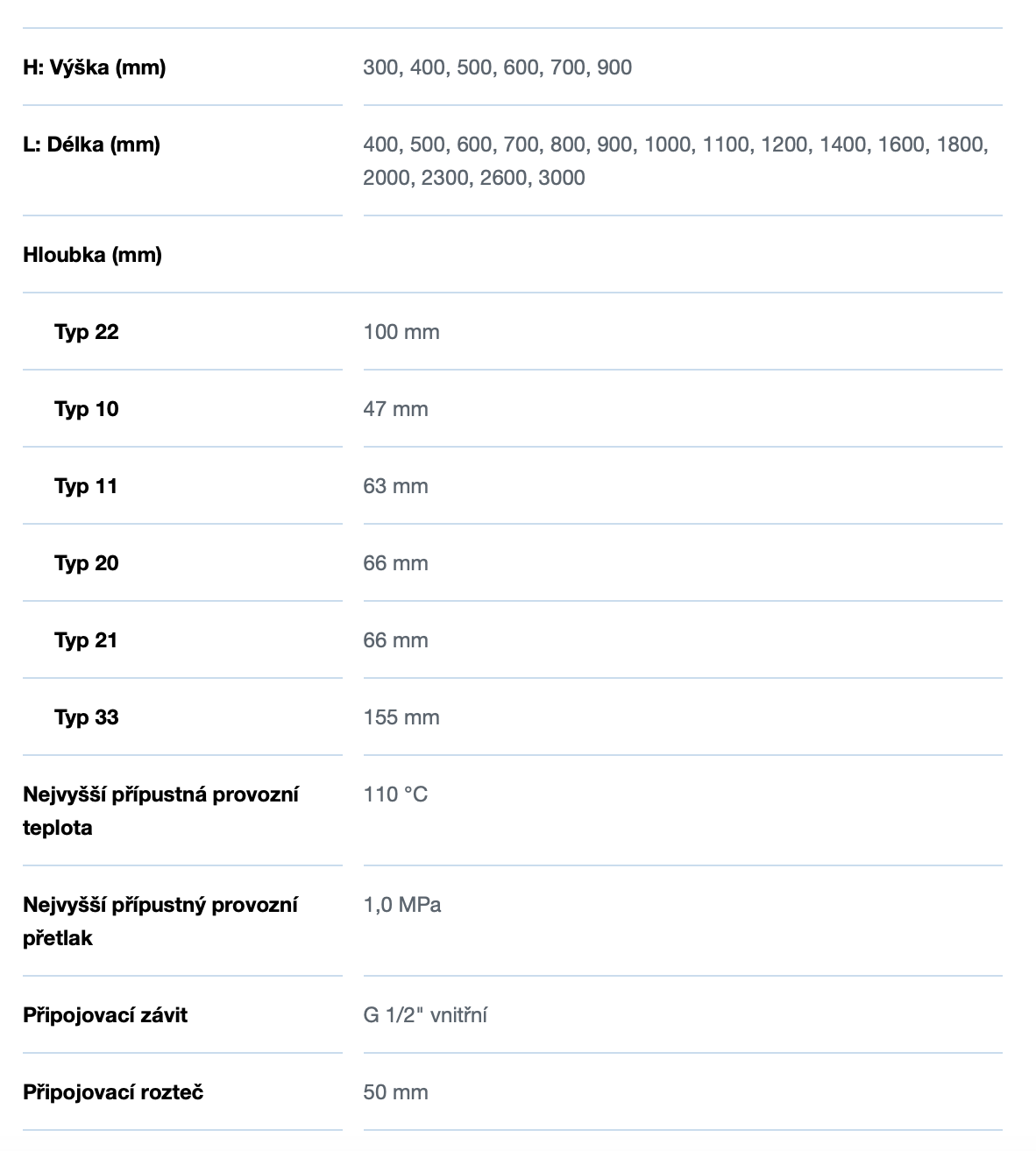| Řada deskového radiátoru: | RADIK |