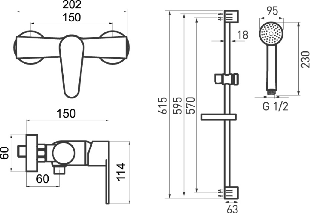 Koupelnová sada obsahuje i kit – sprchovou růžici, posuvný držák, kovovou hadici a praktickou mýdlenku.