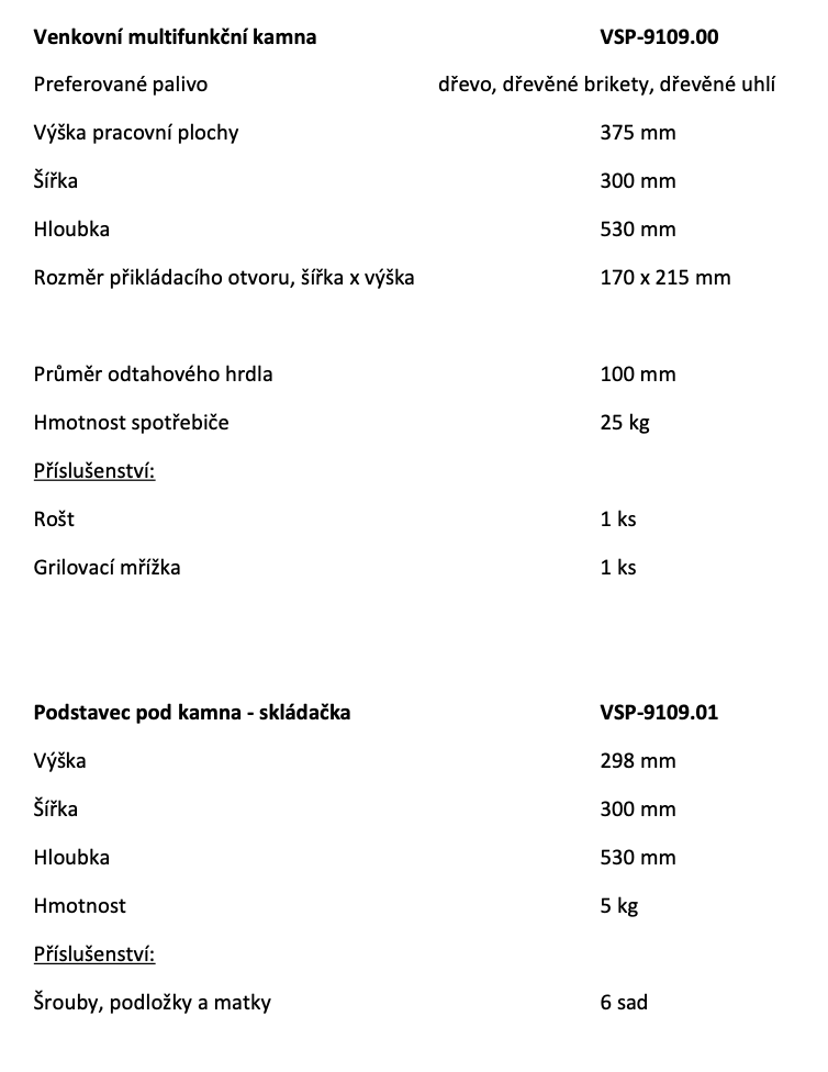 KVS Moravia 9109 multifunkční kamna 300x530x375mm, venkovní, s plotnou a roštem, černá