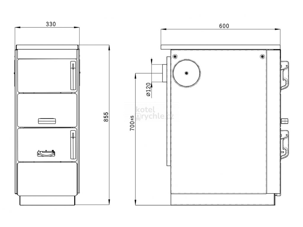 KVS MORAVIA VSP 9101 sporák na tuhá paliva 6 kW, antracit s chromovými doplňky