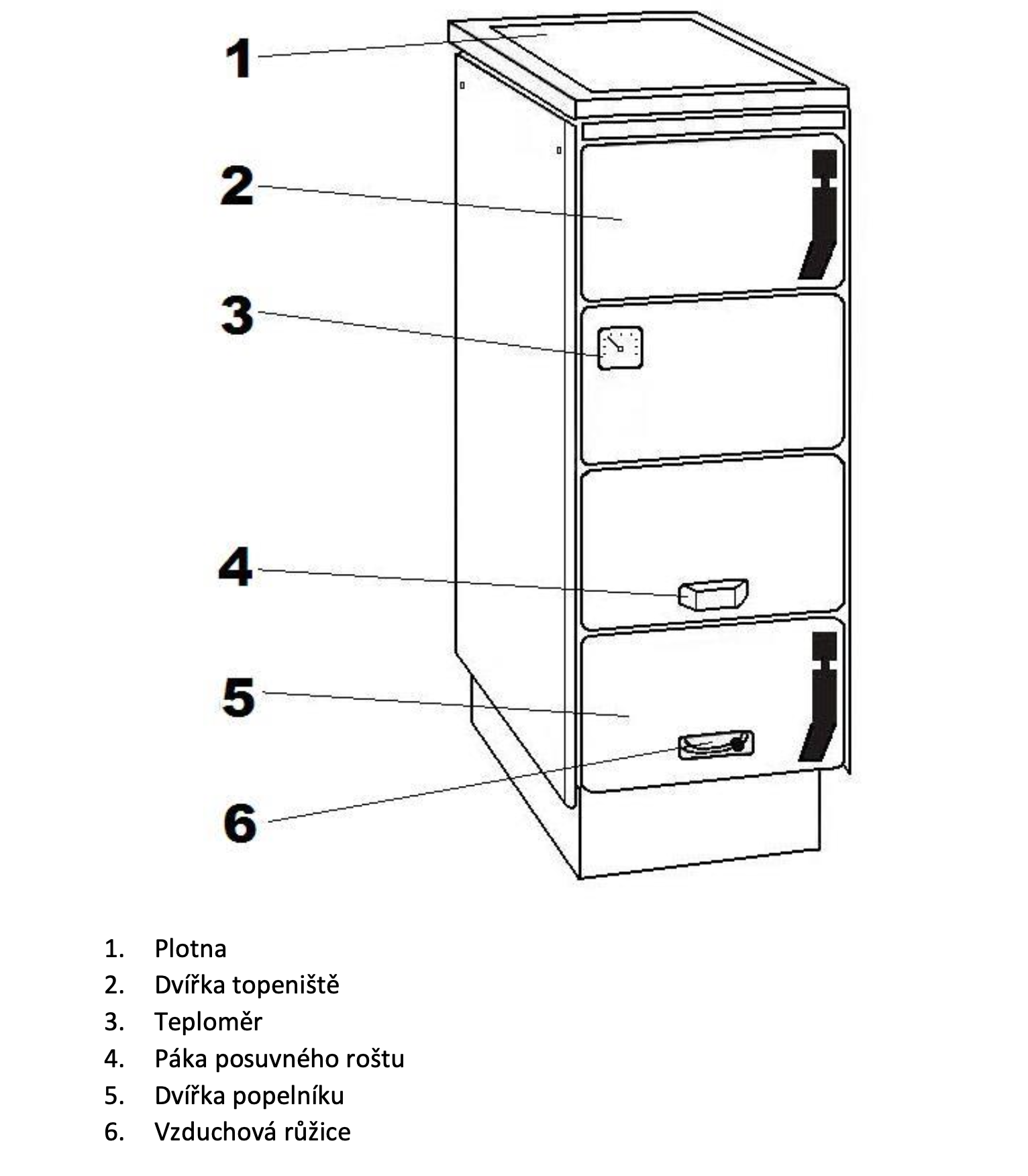 * U výrobku nelze nastavit stáložárný provoz a je nutné přikládat v intervalech 1-3 hodiny (tzn. spotřebič je způsobilý krátkodobého provozu).