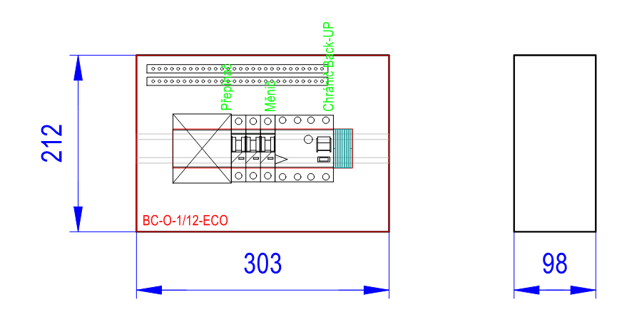 M5+P3F rozvaděč 303x98x212mm, záloha 3F s přepínačem