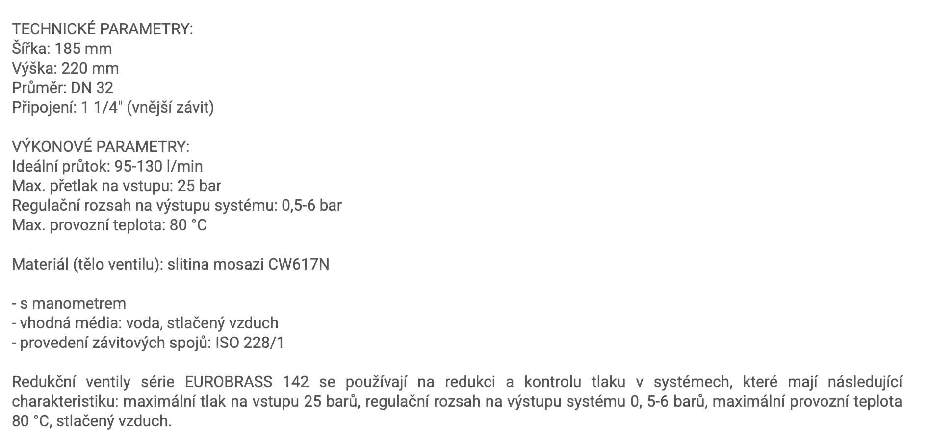 | Regulační rozsah na výstupu: | 0,5-6 bar |