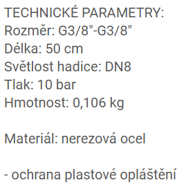 MERABELL AQUA hadice G3/8"-G3/8", 50cm, toaletní, nerez ocel