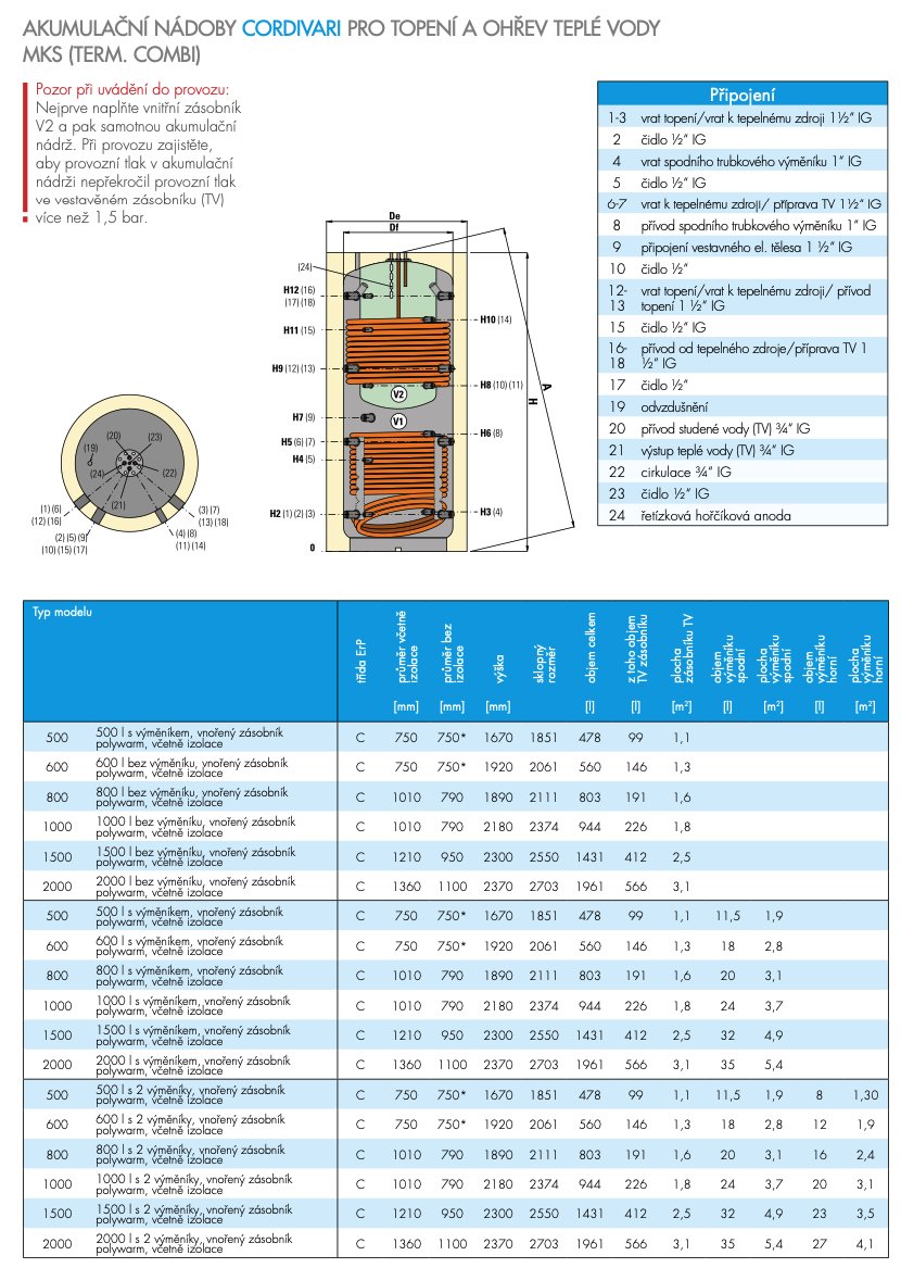 Nádoba akumulační 1000 l MKS2 s vnořeným zásobníkem 226l, 1 výměník, vč. Izolace