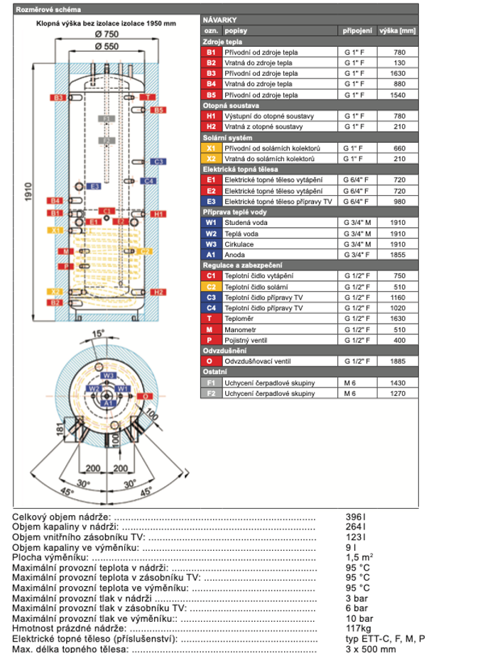 Kombinovaná akumulační nádrž s přípravou teplé vody ve vnořeném nerezovém zásobníku. Nádrž je vybavena solárním výměníkem, který umožňuje využít solární systém pro přípravu teplé vody pro domácnost i přitápění. Jako hlavní zdroj tepla může být použito tepelné čerpadlo, krbová vložka, plynový či jiný kotel a jejich kombinace. Do nádrže lze nainstalovat 2 elektrická topná tělesa pro vytápění domu a další topné těleso pro přípravu teplé vody pro domácnost.