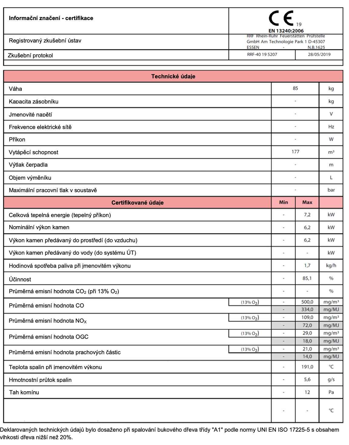 | Průměr kouřovodu: | 120 mm |