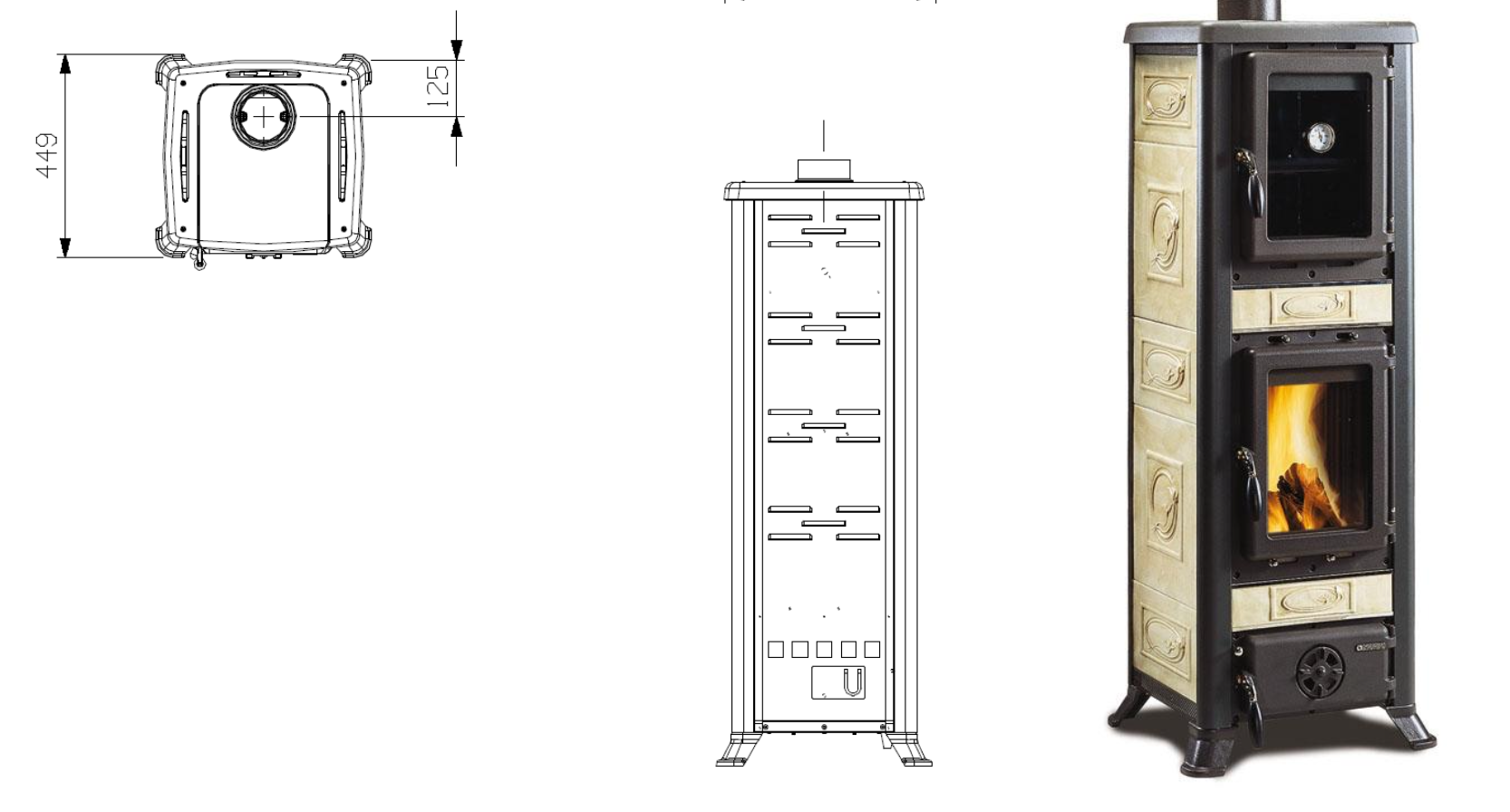 NORDICA FULVIA FORNO krbová kamna 3-9kW, s troubou, liberty pergamena