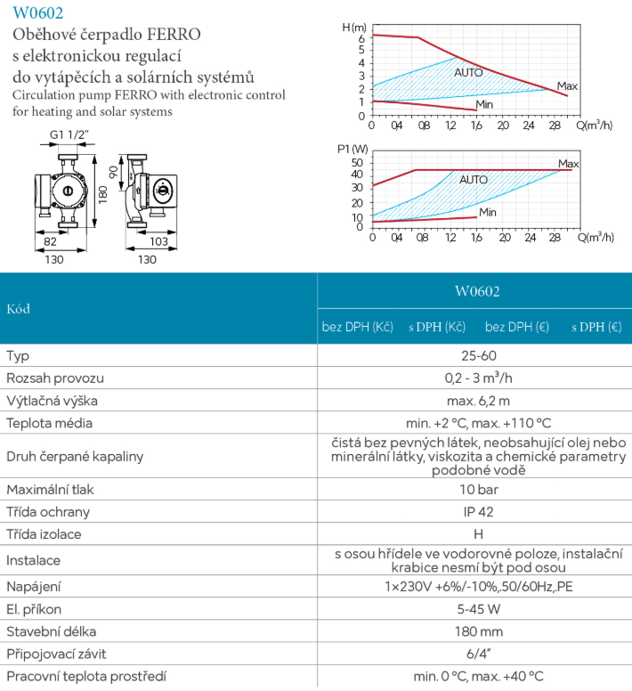 příkon 5-45WStavební délka 180 mm Připojovací závit 6/4" Do vytápěcích systémů