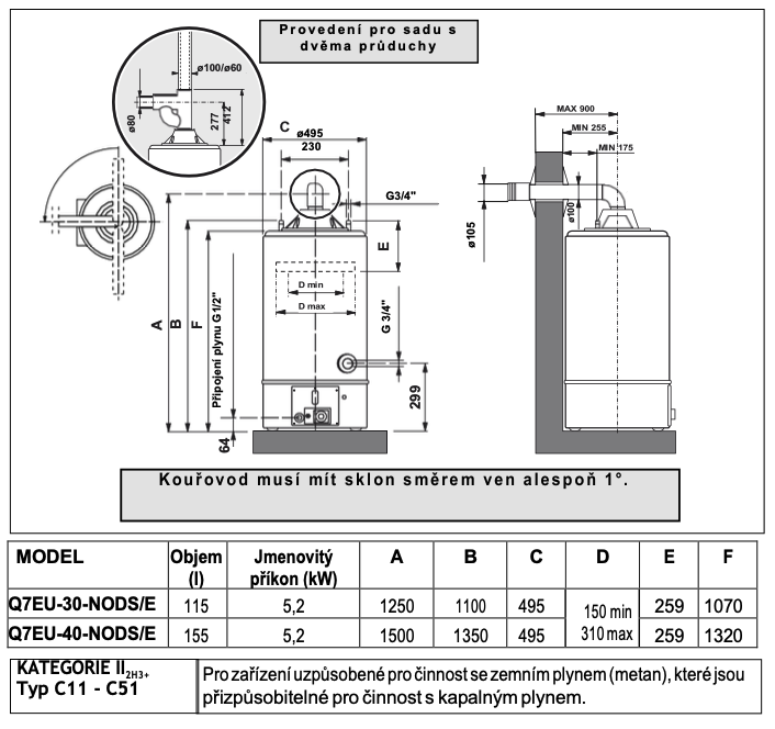 Ohřívač plynový zásobníkový Quantum Q7EU-30-NODS/E 115 l, 4,8 kW
