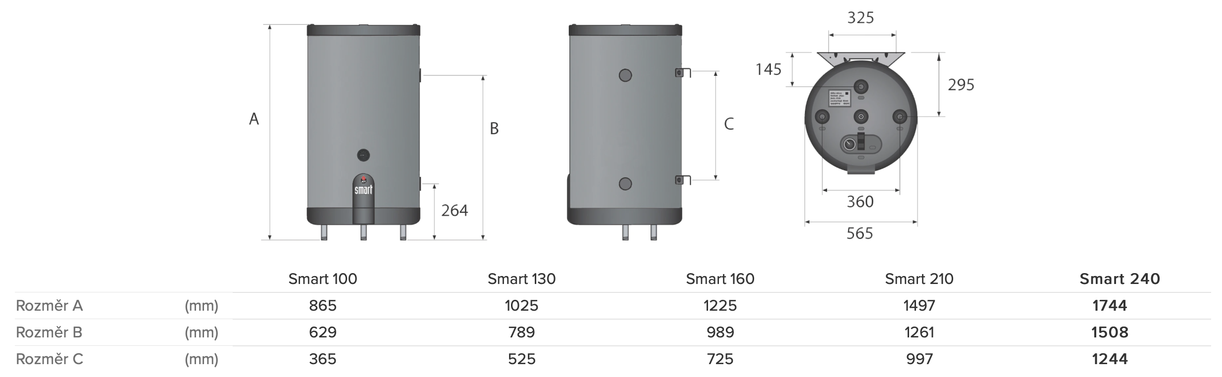 Ohřívač SMART 240, šedý, výměník 2,29 m2 pro tepelná čerpadla