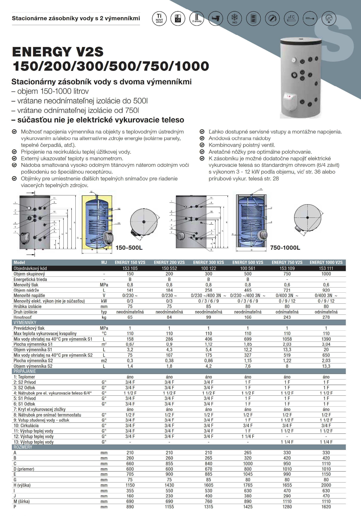 Ohřívač TUV ENERGY E300 V20/S stacionární 300 l, 2 výměníky