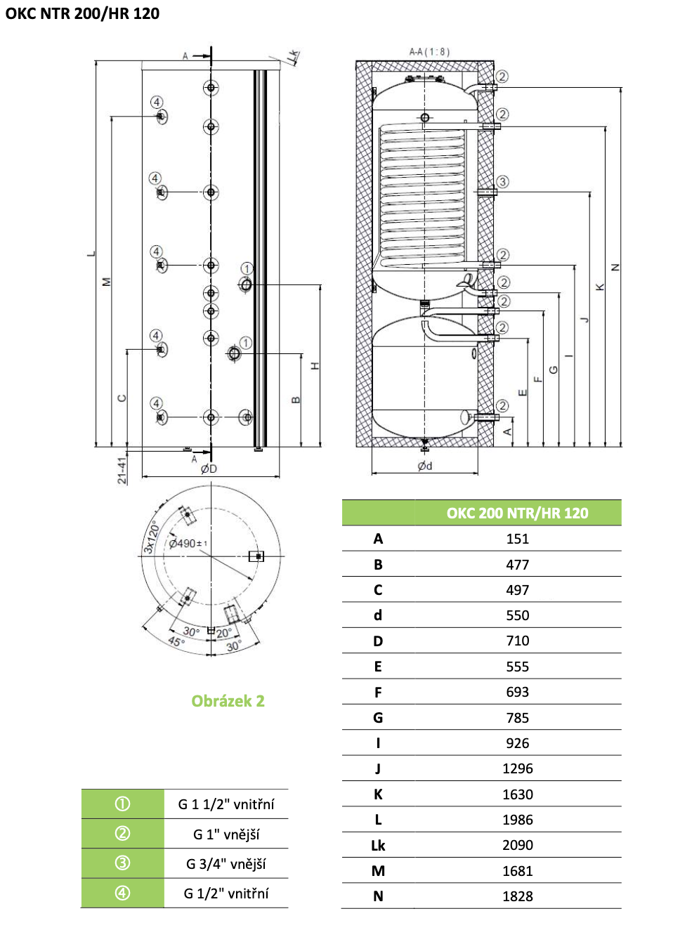 Ohřívač vody OKC 200 NTR/HR 120 pro tepelná čerpadla