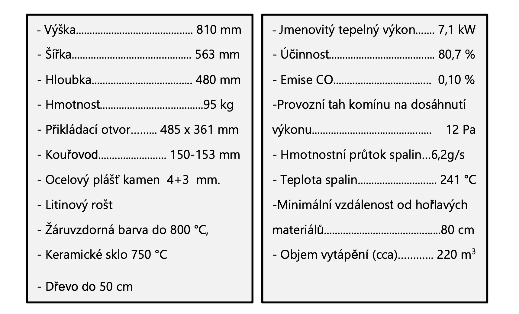 | Vytápěcí schopnost kamen: | 220 m3 |