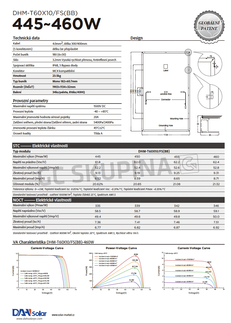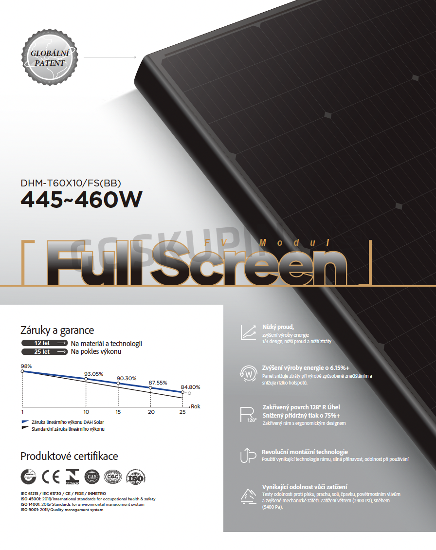 Panel fotovoltaický DAH Solar DHM-T60X10/FS 455Wp, fullblack