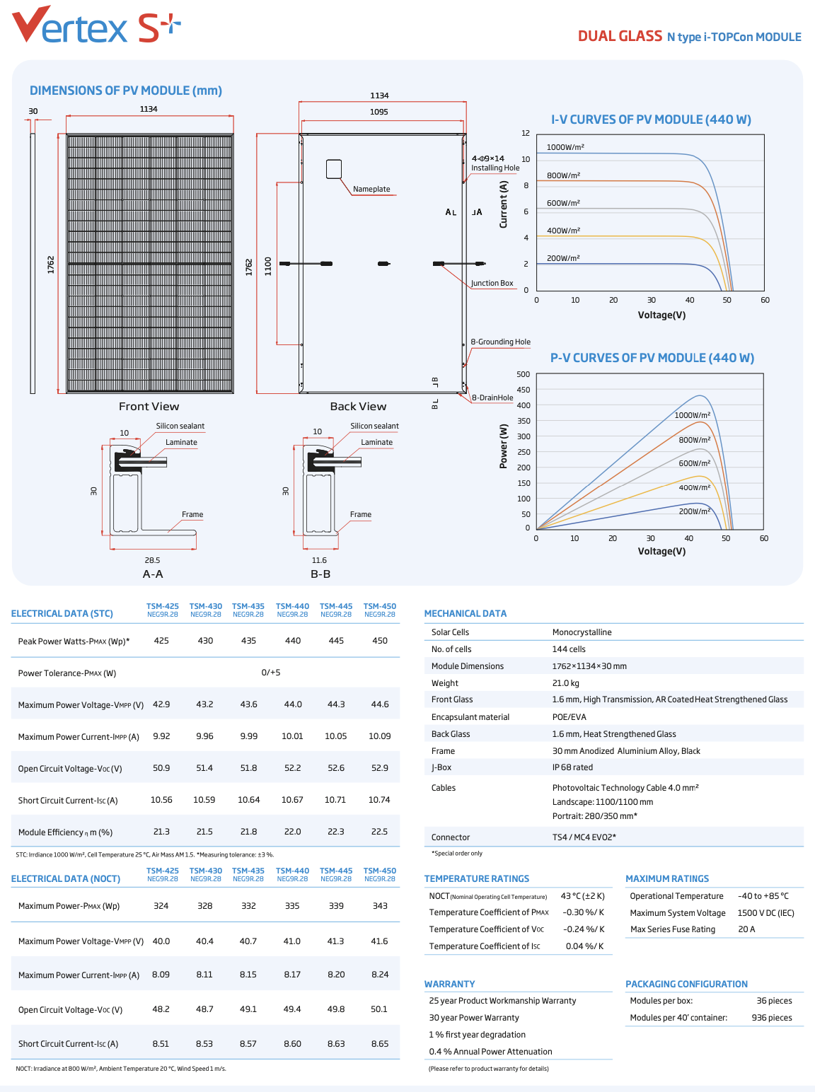 Panel fotovoltaický TRINA SOLAR, TSM-NEG9R. 28-450, 450W, BLACK FRAME