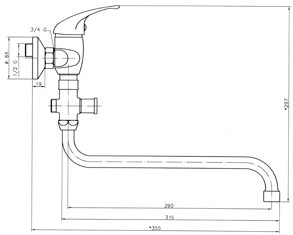 Paneláková nástěnná vanová baterie s roztečí 100 mm s aretačním přepínačem a výtokovým ramínkem v délce až 330 mm.