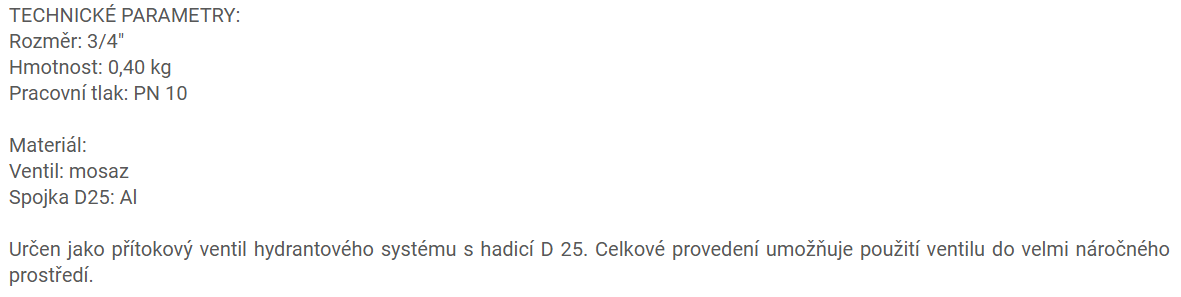 | Příslušenství vhodné pro: | hydrant |