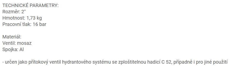 PAVLIŠ A HARTMANN přítokový ventil 2" hydrantového systému