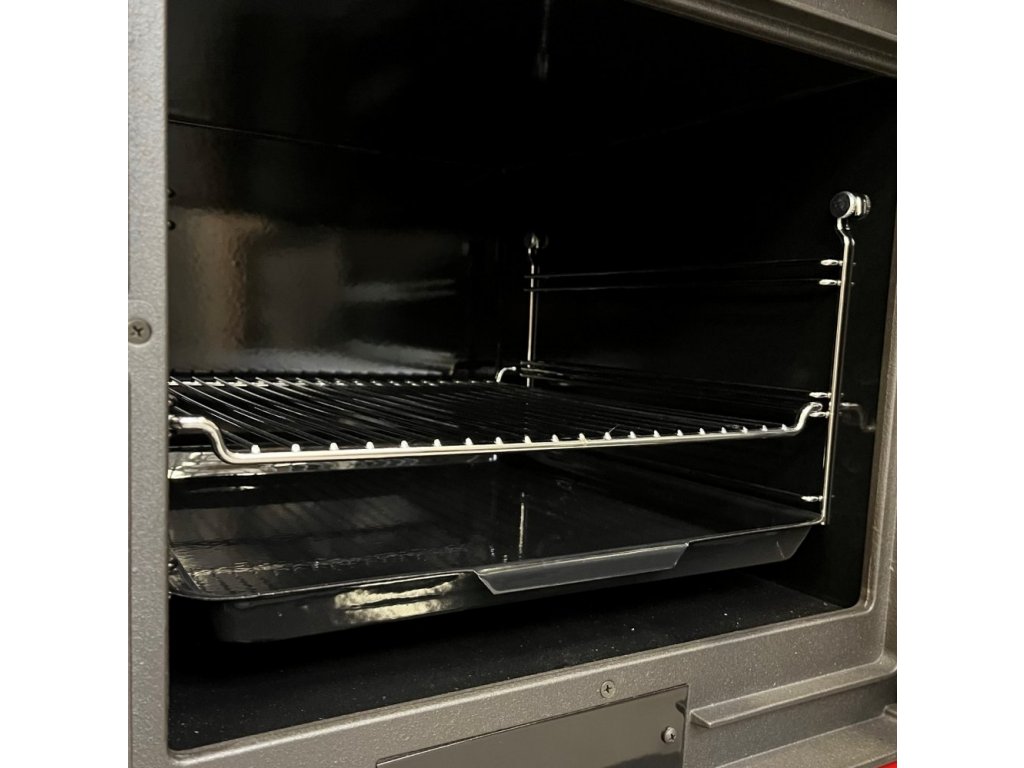 Prostorná spalovací komora je vyrobena z litiny. Součástí výbavy je i praktická vyjímatelná nádoba na popel pro snadné vyprazdňování, rošt a plech na pečení, dále rukavice a pohrabáč.