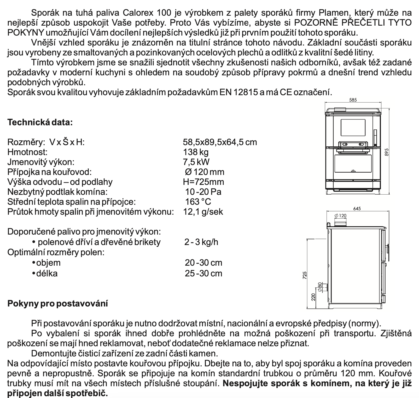 PLAMEN CALOREX 100 sporák na tuhá paliva 7,5kW, s troubou, bílá/černá