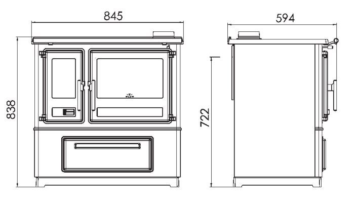 Vnější vzhled sporáku je uveden na přední straně tohoto návodu. Hlavní části sporáku jsou vyrobeny ze smaltované a pozinkované ocelové plechy a odlitky z vysoce kvalitní litiny. Vyrábíme sporáky s levým nebo pravým konektorem kouřovodu. Proto je při objednávání sporáku nebo náhradních dílů to zapotřebí uvést. Pravý sporák má konektor kouřovodu na pravé straně když se díváme na sporák z přední strany, a levý po levé straně.
